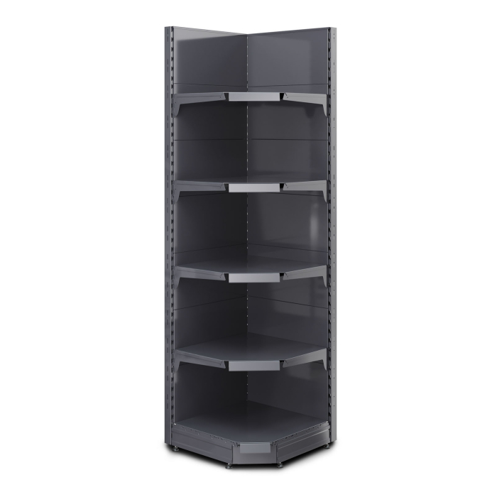 Brooklyn-hjørnereolen er lavet af metal og er det optimale valg til effektiv bu tiksindretning i supermarkeder. Det opfylder alle de krav, der er vigtige for uundværlige butiksindretningssystemer. Vores hjørnereoler kan også tilpasses og er fleksible i designet. Supermarkedet kan justere produktvalg og placering efter behov. Produkterne kan nemt omarrangeres eller byttes ud for at vise sæsonvarer eller specialtilbud. Takket være den robuste metalramme er vores hjørnehylder slidstærke og holdbare. De kan uden problemer bruges til flere formål og giver fleksibilitet til at udstille dine varer effektivt. Bagpanelerne og beslagene giver ekstra stabilitet og gør det muligt at arrangere hylderne på en overskuelig måde. Med Brooklyn-hjørnehylden har du fundet den perfekte løsning til optimal butiksindretning i supermarkedet. Den er ikke kun funktionel og slidstærk, men også æstetisk tiltalende. Sæt et imponerende præg på din butik, og giv dine kunder en førsteklasses indkøbsoplevelse