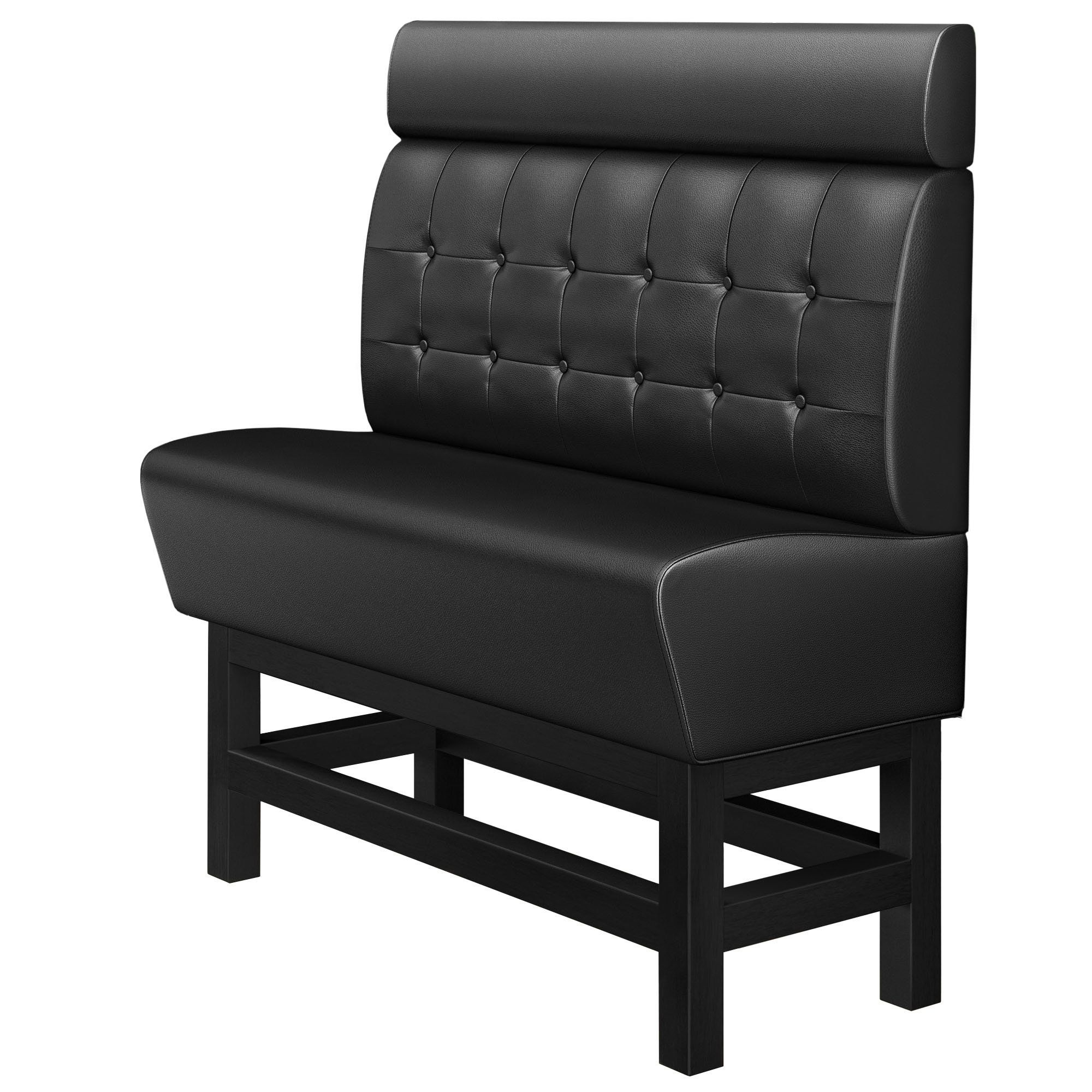 MIAMI | Højbænk til restauranter | B:H 200 x 158 cm | Sort | Chesterfield-knap | Læder