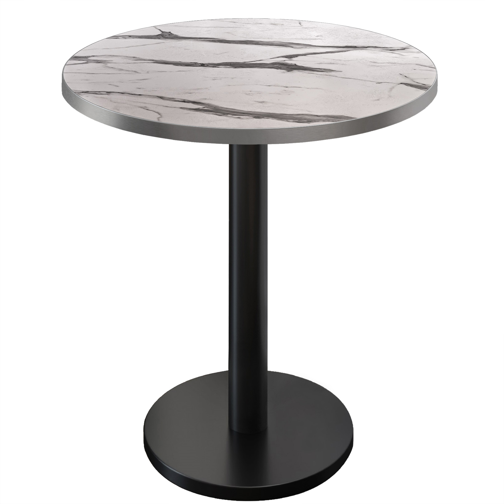 BN | Bistro Stehtisch | Ø 60 x 108 cm | Edelstahl Rand | Rund | Weiß Marmor / Schwarz