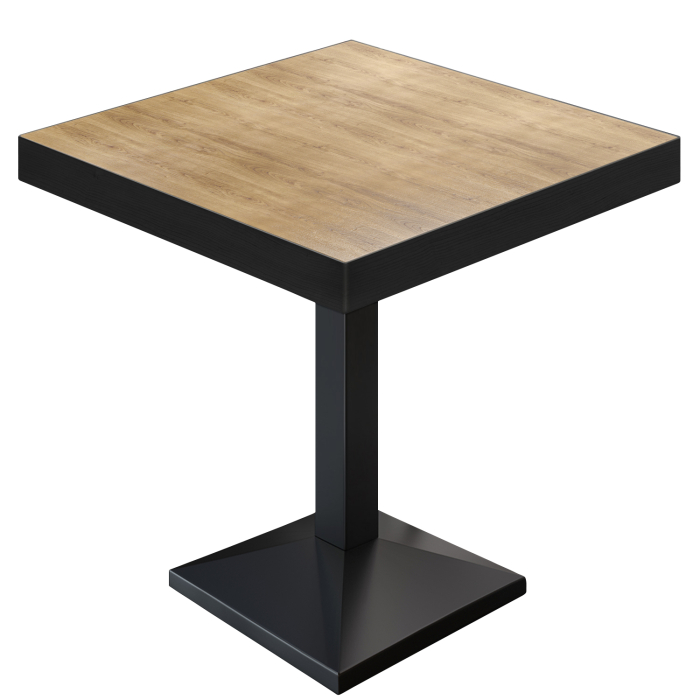BPA | Bistro Tisch | Quadratisch | Schwarzer Rand | 80 x 80 x 81 cm | Eiche / Schwarz