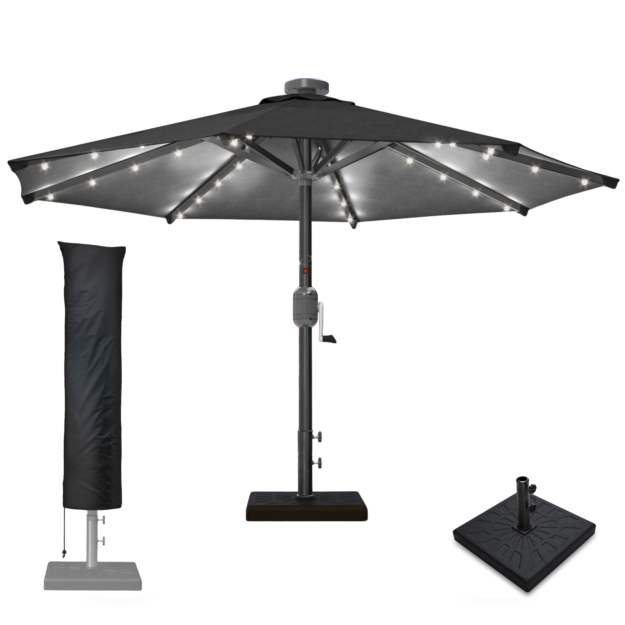 SUN MARINO | Sonnenschirm | Rund | Ø 300 cm | Schwarz | LED | +Ständer & Hülle