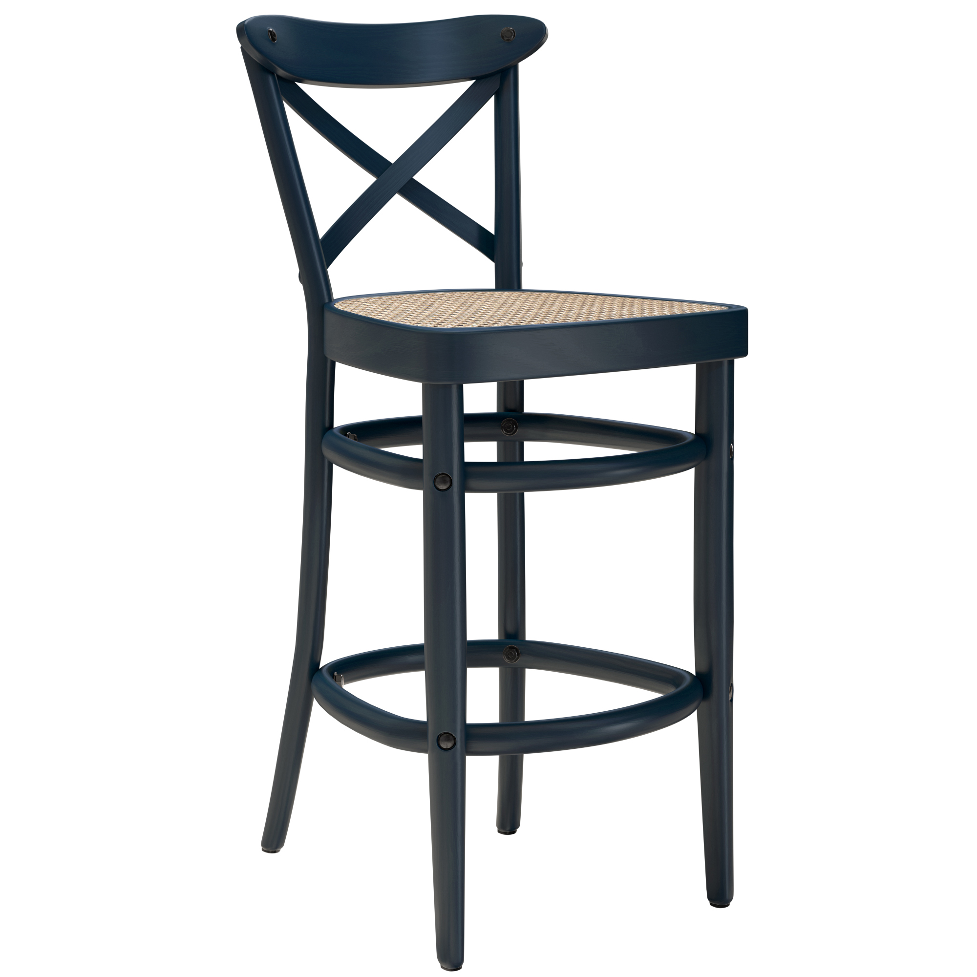 MAUDEZ | Bentwood Bar Stool | Rattan Weave | Dark Blue | Bentwood