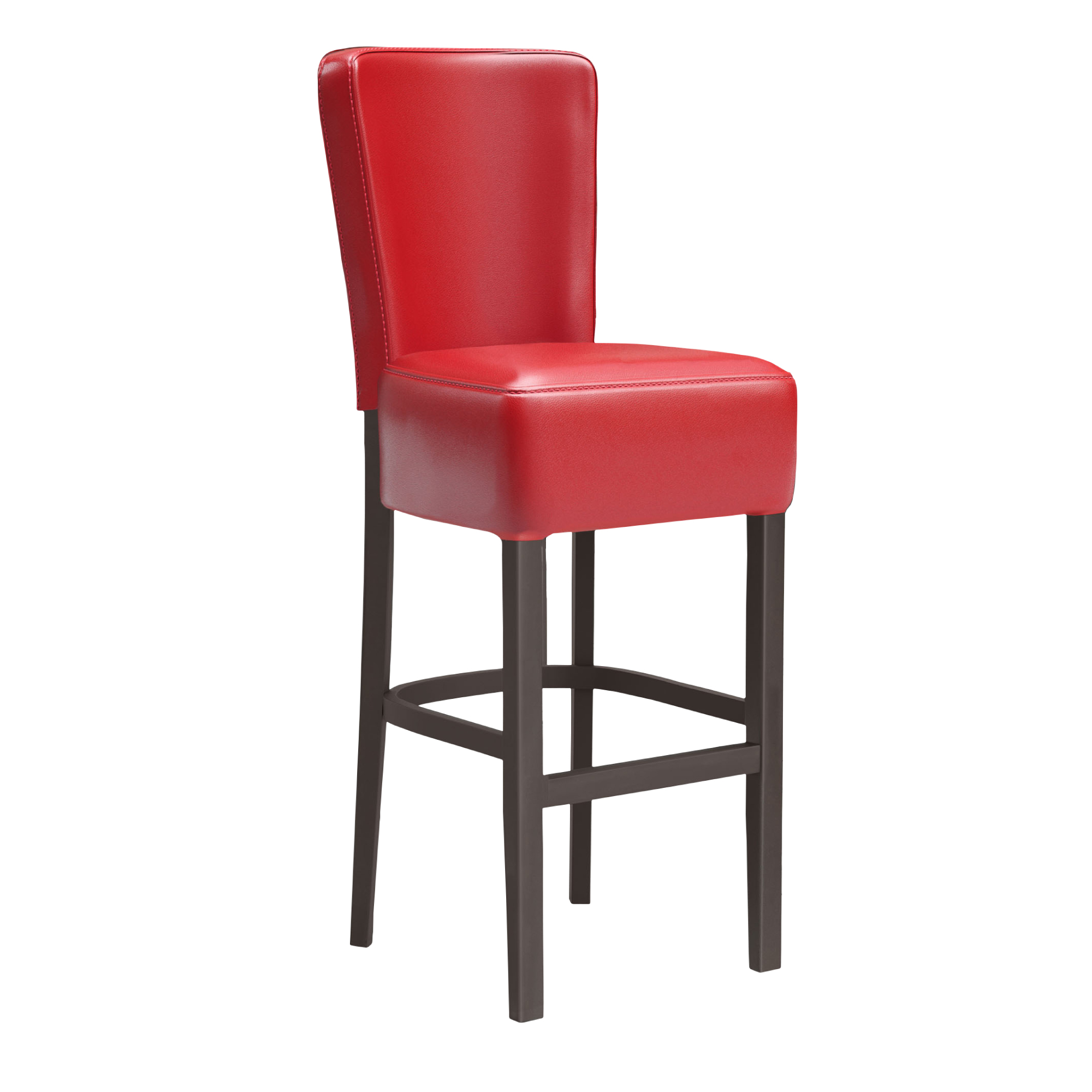 LUCA FULL | Taburete de bar tapizado | Piel | Madera | Rojo | con respaldo