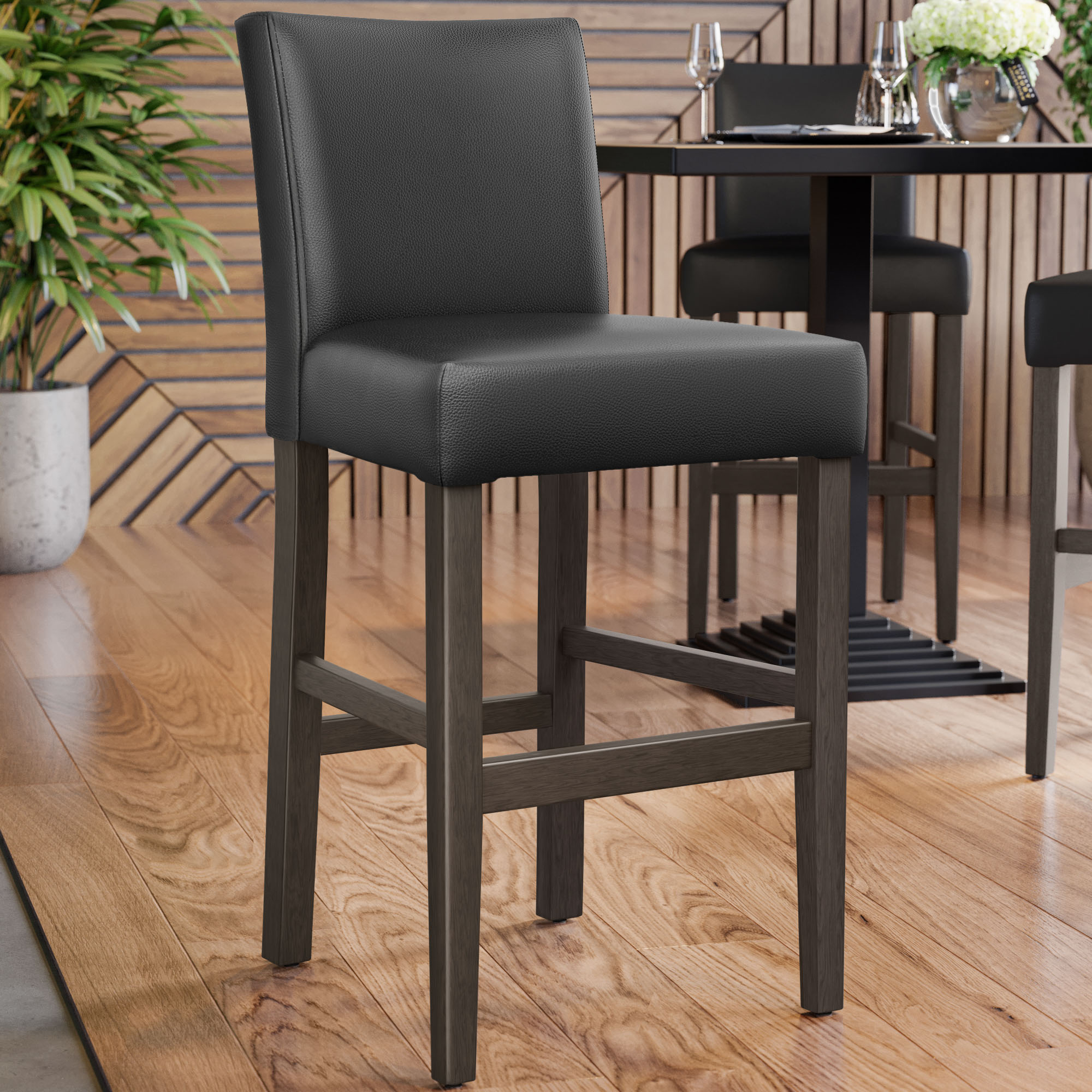 TAYLOR | Taburete de bar tapizado | Piel | Madera | Negro | con respaldo