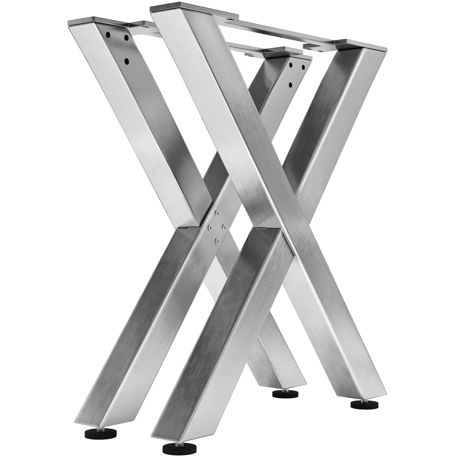 El Las patas para mesas altas de la serie Juana impresionan por su diseño exclusivo y son ideales para proyectos de bricolaje . La forma en X de la estructura añade un toque llamativo a su interior y, además, presume de una calidad excepcional. Las patas están hechas de acero inoxidable resistente y presentan un acabado brillante . Gracias a su diseño atemporal y moderno, son versátiles y perfectas para su restaurante o bar .
