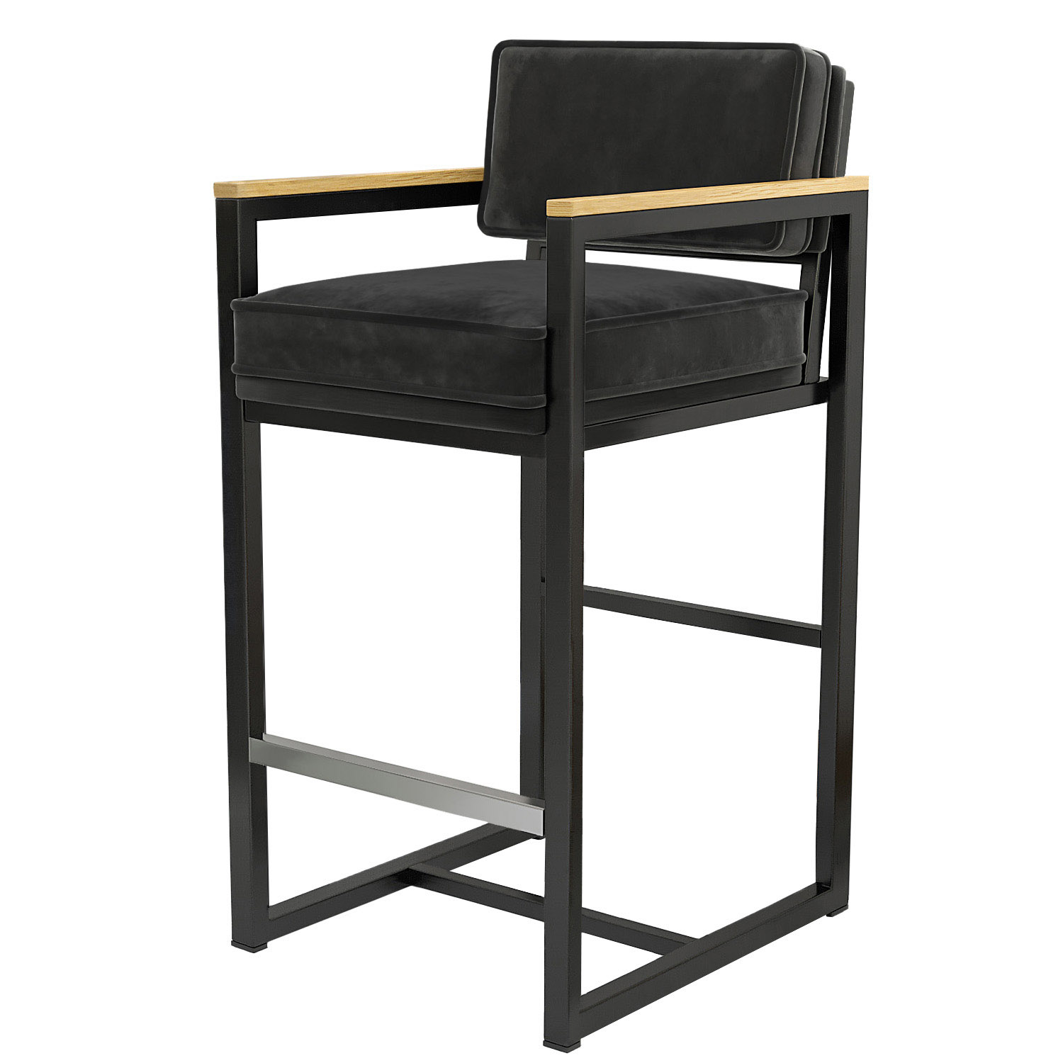 KYLA | Baarituoli Metallirungolla | Sametti | Musta | schwarz | mit Lehne