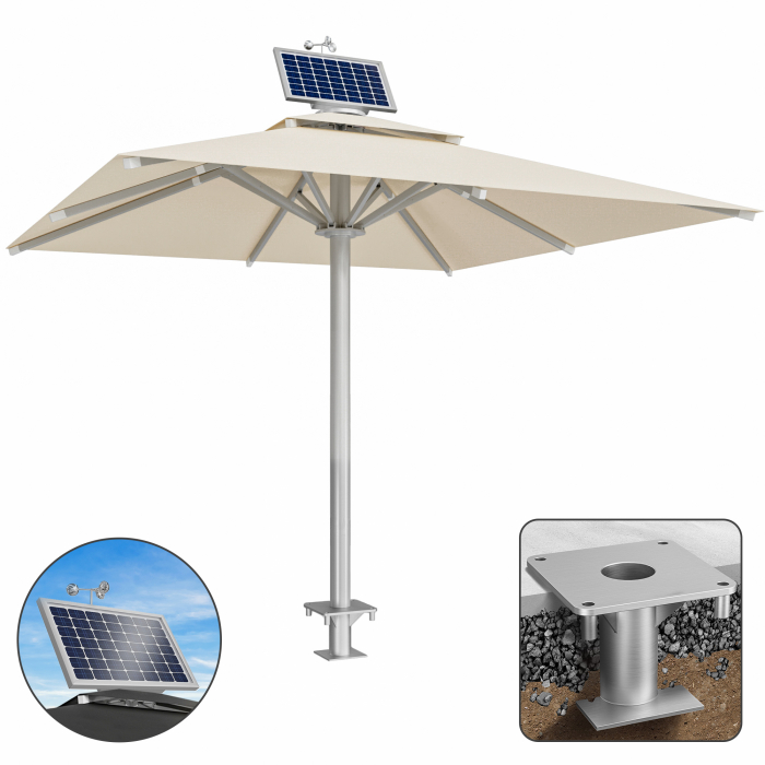 SUN LEON | Gastro Aurinkovarjo Premium | B:T 400 x 400 cm | Taupe | Moottori + Ankkuriputki | Neliö