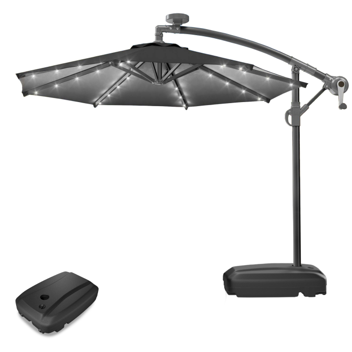 SUN LUCA | Parasol | Rond | Ø 300 cm | Noir | LED | +Supports