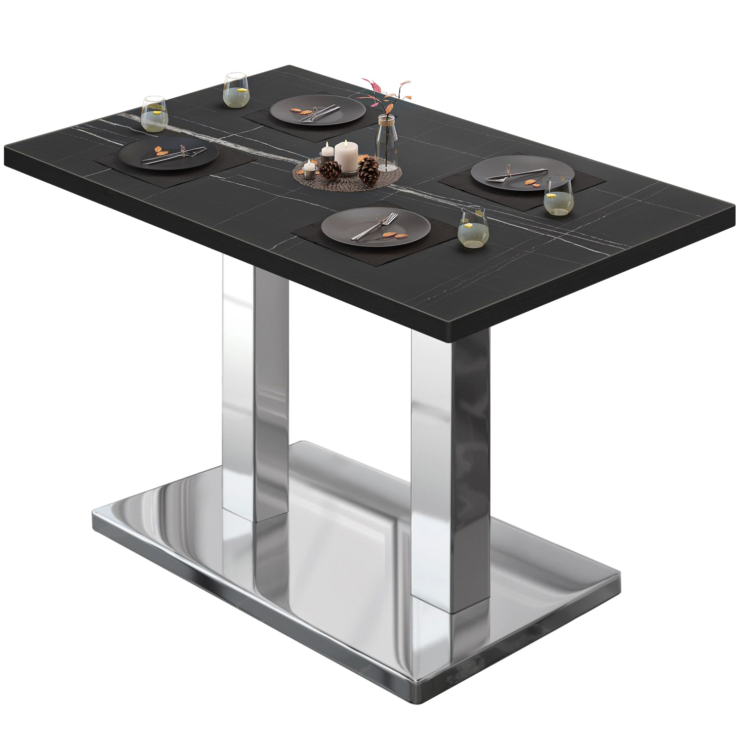 BM | Tavolo da bistrot | L:P:H 110 x 60 x 75 cm | Marmo nero / acciaio inox | Rettangolare