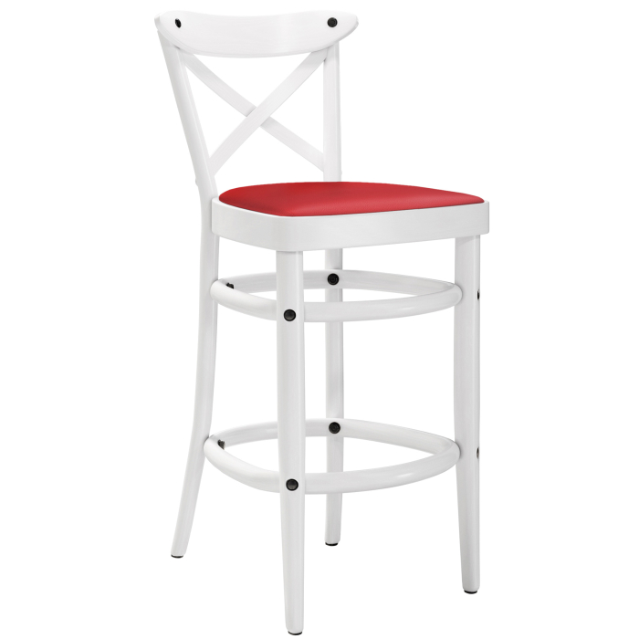 MAUDEZ | Bugholz Barhocker | Holz / Leder Rot | Weiß | Bugholz