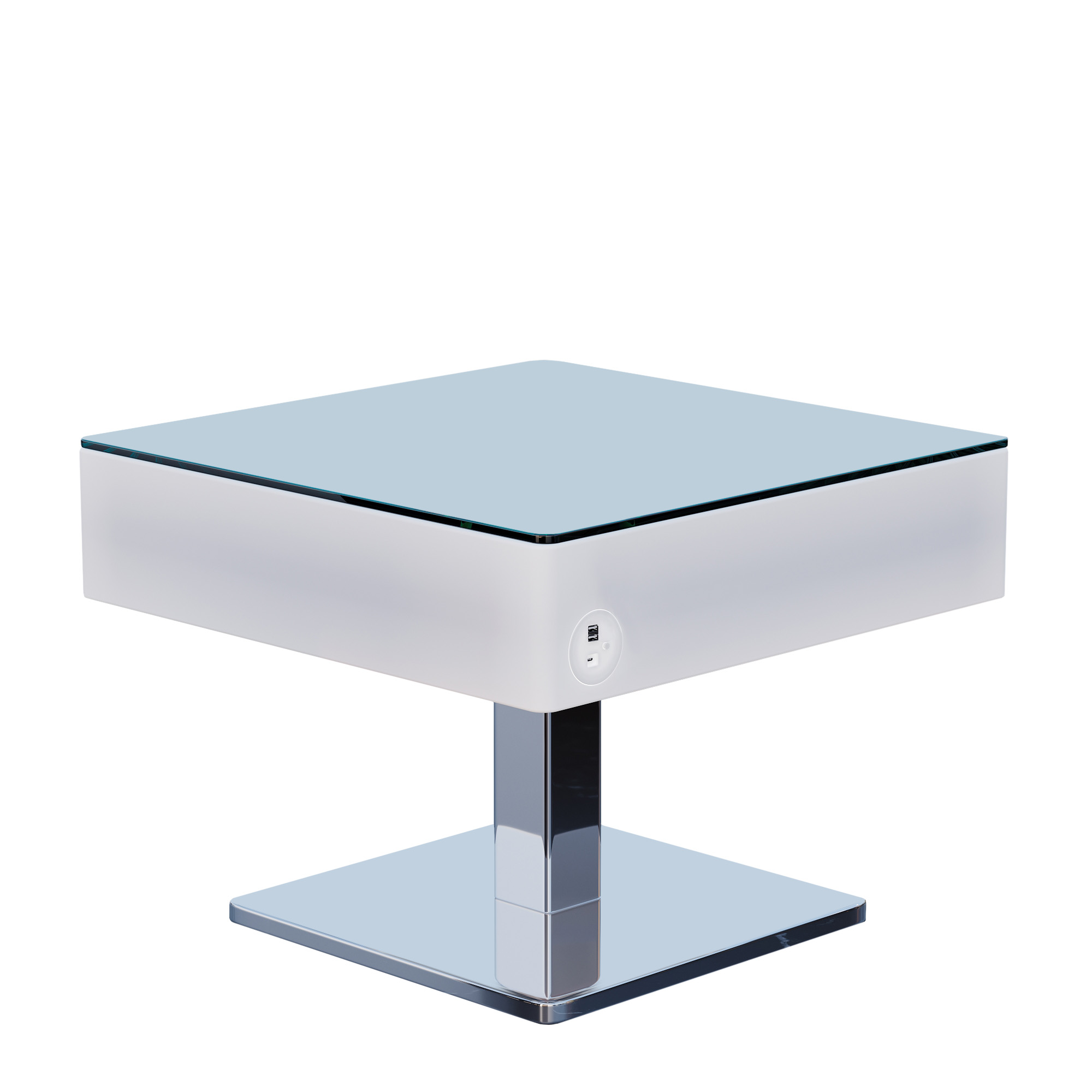 Coozy er et allsidig LED-loungebord som egner seg for både innendørs og utendørs bruk . Med sin firkantede form og kombinasjonen av polykarbonat og glassbordplaten er den ikke bare ekstremt stabil, men også et ekte blikkfang som gir din klubb, bar eller terrasse en spesiell atmosfære. Bordrammen laget av børstet rustfritt stål gir også Coozy et elegant design som passer harmonisk inn i ethvert miljø.En annen praktisk fordel med Coozy er den integrerte USB-porten , som du kan lade dine elektroniske enheter som smarttelefoner eller nettbrett direkte ved bordet med uten å måtte se etter ekstra stikkontakter. Dette gjør Coozy spesielt praktisk og lar deg nyte kveldene uforstyrret.