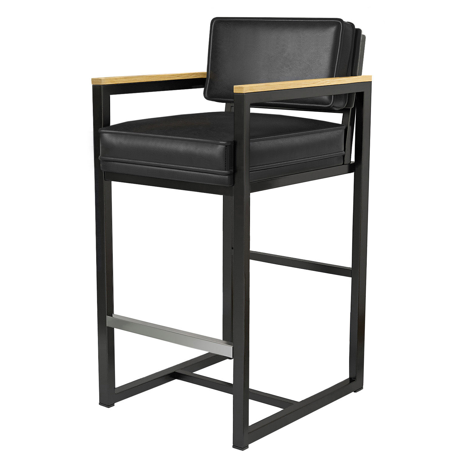 KYLA | Metalen Frame Barkruk | Leer | Zwart | Zwart | Met rugleuning