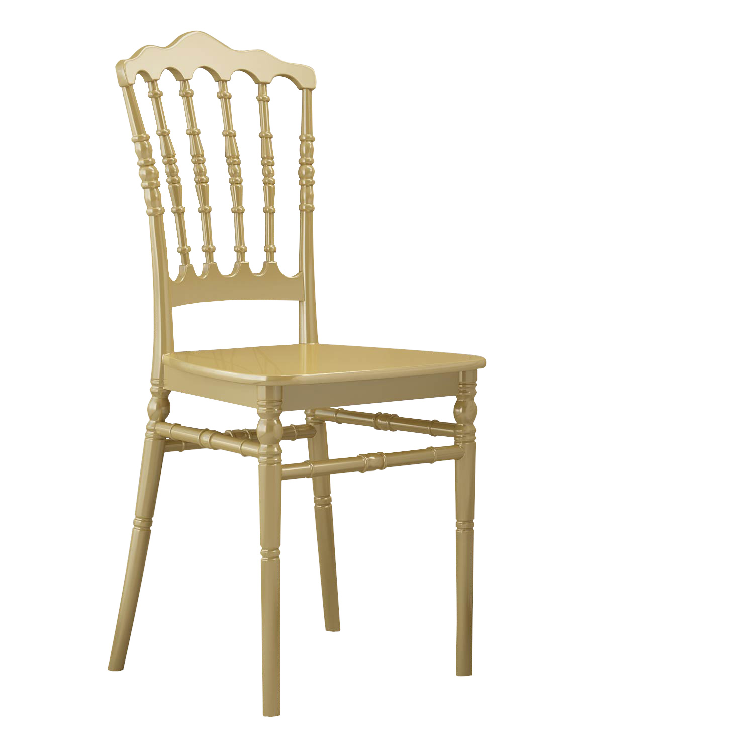 Koninklijke feestelijkheid, verfijning en elegantie komen tot uitdrukking in deze stoelen met gekroonde rug uit de Chiavari serie. Koninklijk vieren hoeft niet hoogdravend te zijn. Kroon uw speciale dag zonder veel moeite of kosten. De liefdevolle details maken uw gelegenheid onvergetelijk. Nobel en stoer maakte het Chiavari concept en tegelijkertijd zo populair dat de stoel zelfs de eetzalen in het paleis van koningin Victoria inrichtte, zelfs het Vaticaan binnenkwam als geschenk aan paus Leo XIII uit 1892, verscheen op het huwelijksfeest van John en Jackie Kennedy in 1953 en mocht in 2009 zelfs de State Dining Room van het Witte Huis inrichten. Dit fraaie zitmeubel heeft terecht de toppositie verdiend op bruiloften en andere feestelijke sociale bijeenkomsten