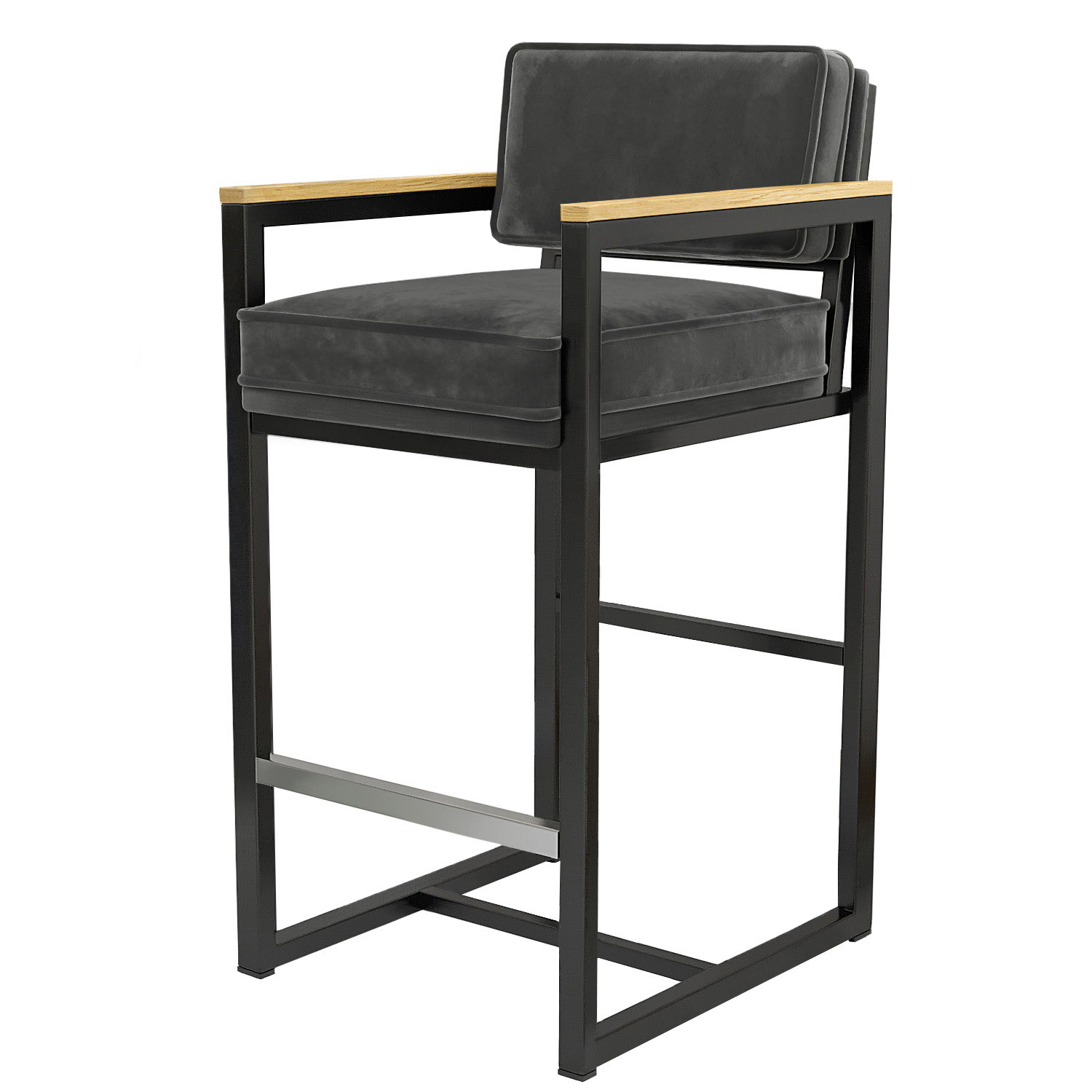 KYLA | Barstol med metallram | Sammet | Grått | Grå | Med ryggstöd