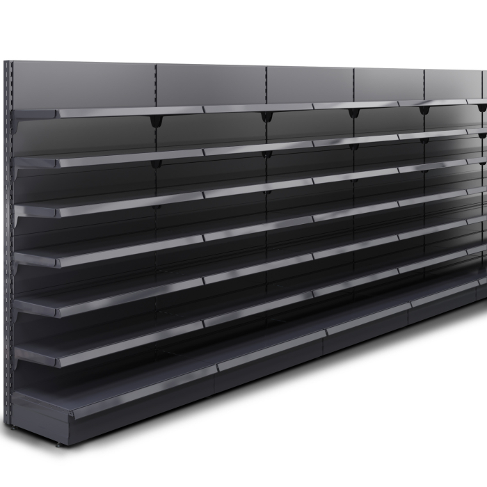 Brooklyn vägghyllsystem av metall med sex hyll plan är det optimala valet för effektiv butiksinredning i stormarknader. Det uppfyller alla krav som är viktiga för oumbärliga butiksinredningssystem. Vägghyllor utnyttjar det vertikala utrymmet i butiken optimalt och gör det möjligt att exponera fler produkter på en begränsad yta. På så sätt kan butiken erbjuda ett bredare sortiment och samtidigt spara utrymme. Våra vägghyllor är också anpassningsbara och flexibla i sin design. Stormarknaden kan justera produkturvalet och placeringen efter behov. Produkterna kan enkelt arrangeras om eller bytas ut för att visa säsongsvaror eller specialerbjudanden. Tack vare den robusta metallramen är våra vägghyllor slitstarka och hållbara. De kan enkelt användas för flera ändamål och erbjuder flexibilitet för effektiv exponering av dina varor. Bakpanelerna och konsolerna ger extra stabilitet och gör att hyllorna kan placeras på ett tydligt sätt. Med Brooklyn vägghylla har du hittat den perfekta lösningen för optimal butiksinredning i stormarknaden. Den är inte bara funktionell och slitstark, utan även estetiskt tilltalande. Gör ett imponerande intryck i din butik och erbjud dina kunder en förstklassig shoppingupplevelse