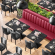 MIAMI | Restaurangbänk | B:H 140 x 128 cm | Röd | Randig | Läder